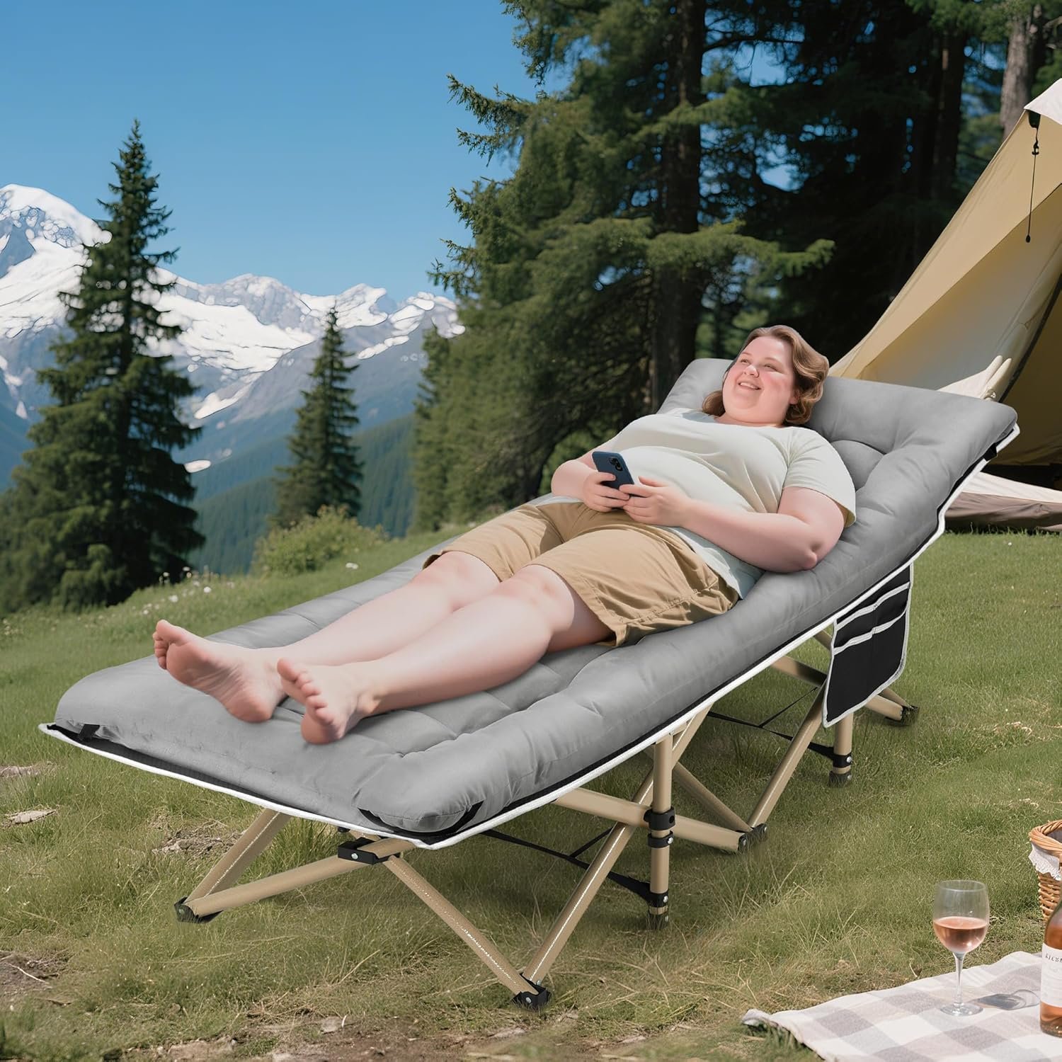 - 28″ Extra Wide & 18°Tilt Design: The 28-inch wide camping bed is perfect for adults. The top of the cot is tilted 18°to make your head more comfortable when lying down, provide comfortable sleep to you. The sleeping bed can be used for camping, home and office and is perfect for nighttime rest, family naps and office breaks.