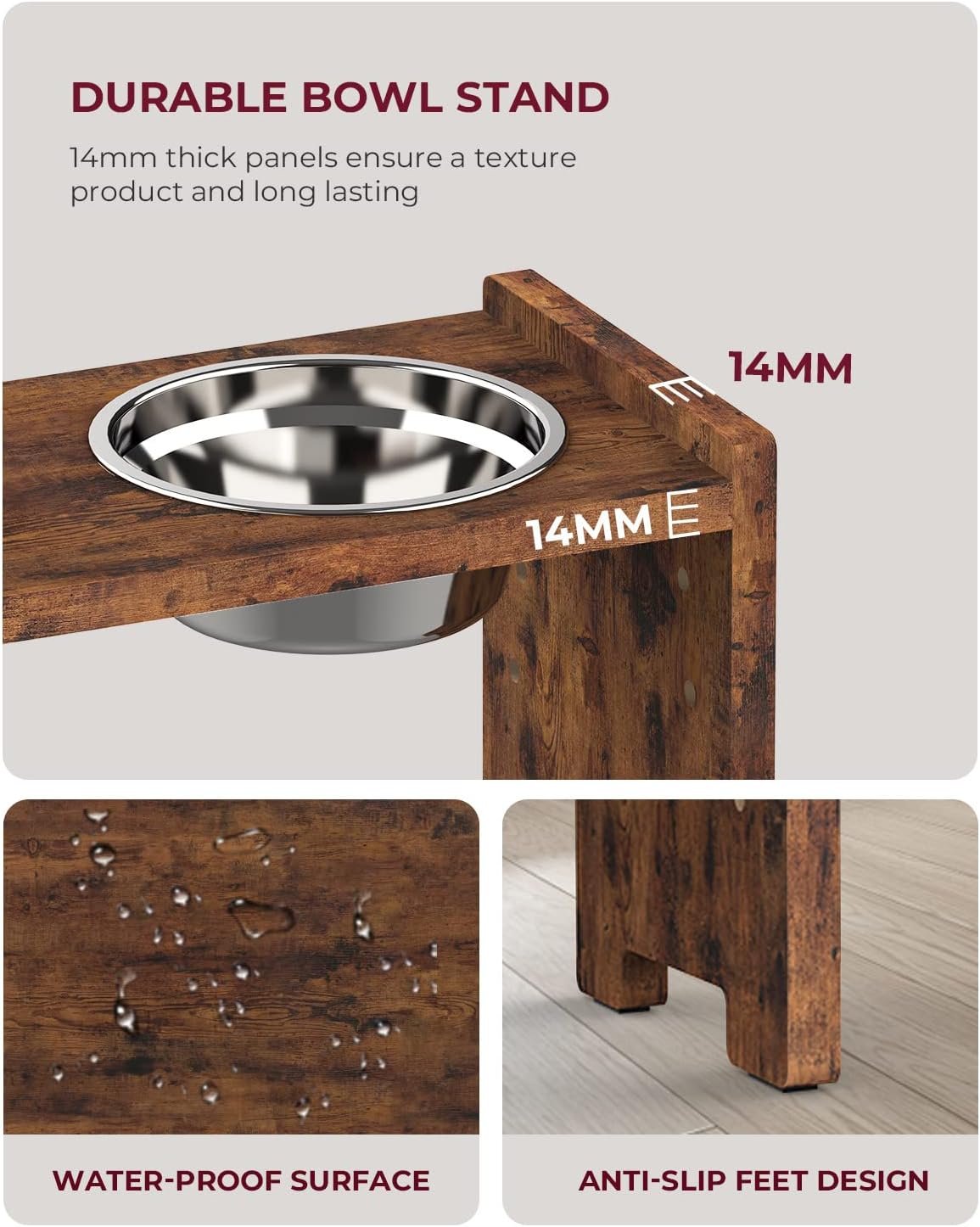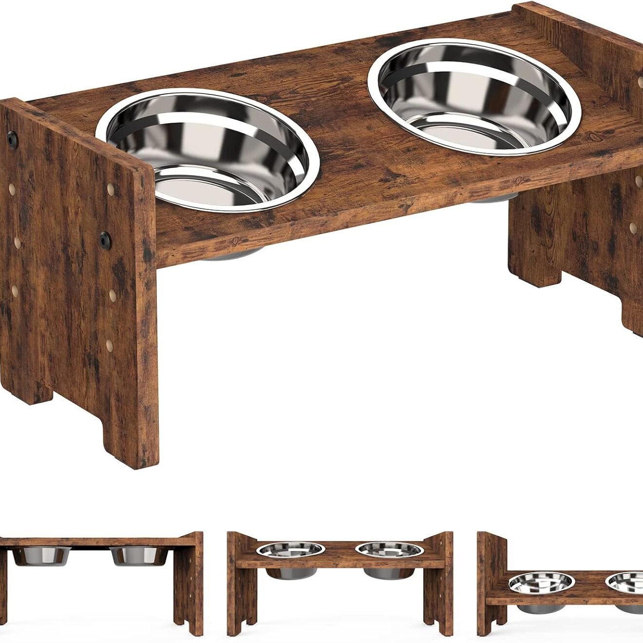 • 【Sturdy & Easy To Clean】: Natural and odor-free particle board wooden workmanship provides the elevated dog bowl with well-finished corners and a smooth surface. Two stainless-steel bowls are rust-resistant and dishwashers safe for easy cleaning and maintenance.